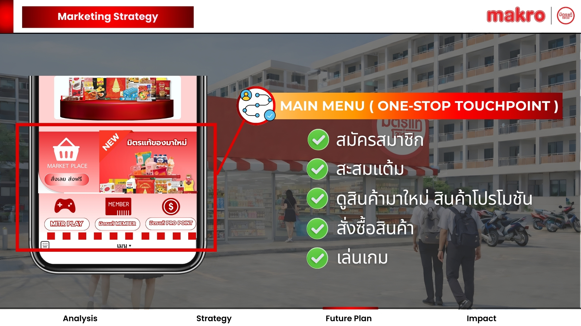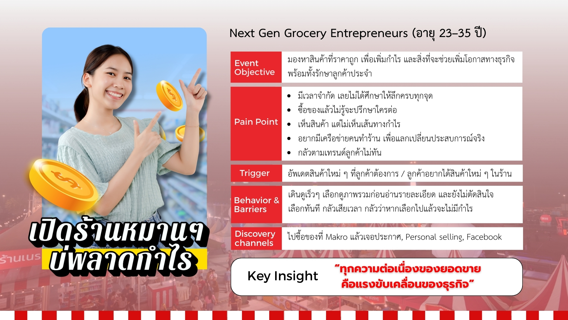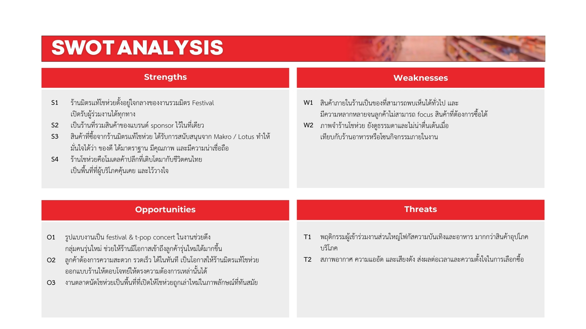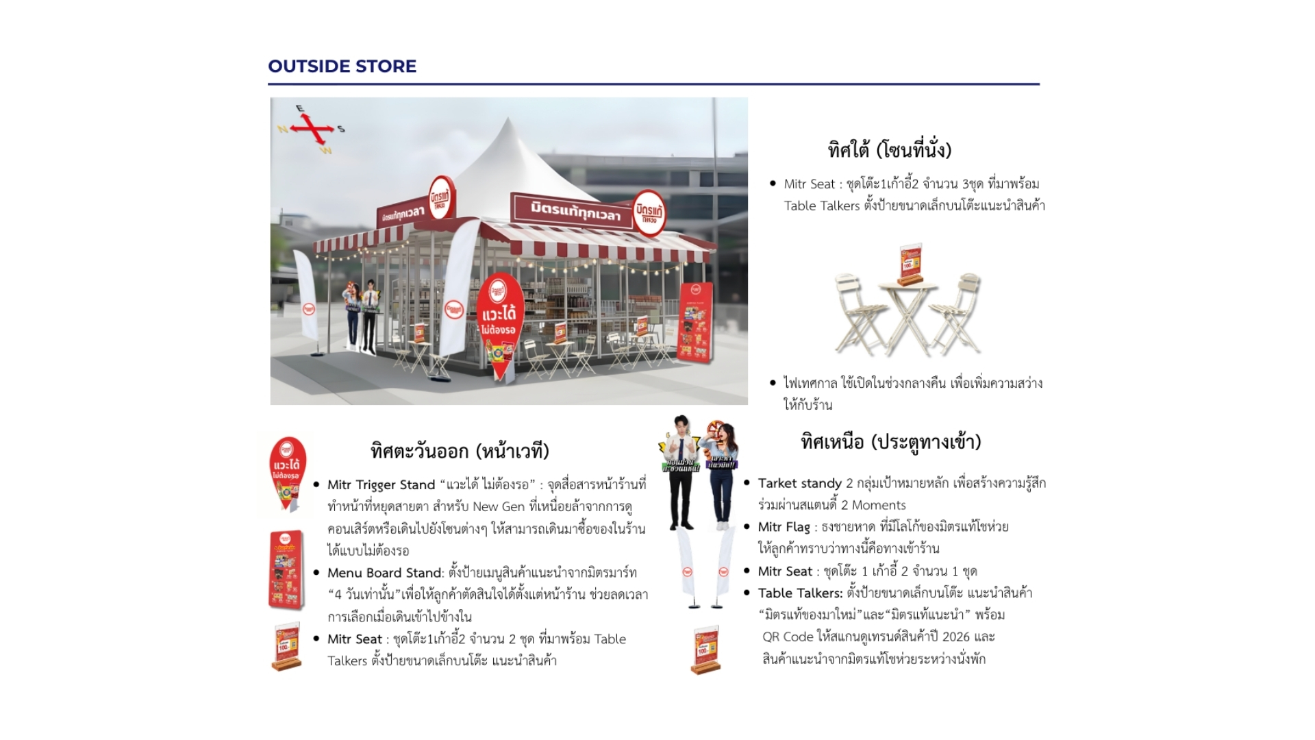 - Marketing Activity: ใช้กิจกรรมและสื่อภายในร้านกระตุ้นการมีส่วนร่วมและการตัดสินใจซื้อ เชื่อมต่อประสบการณ์ร้านเข้ากับความทรงจำของงาน
