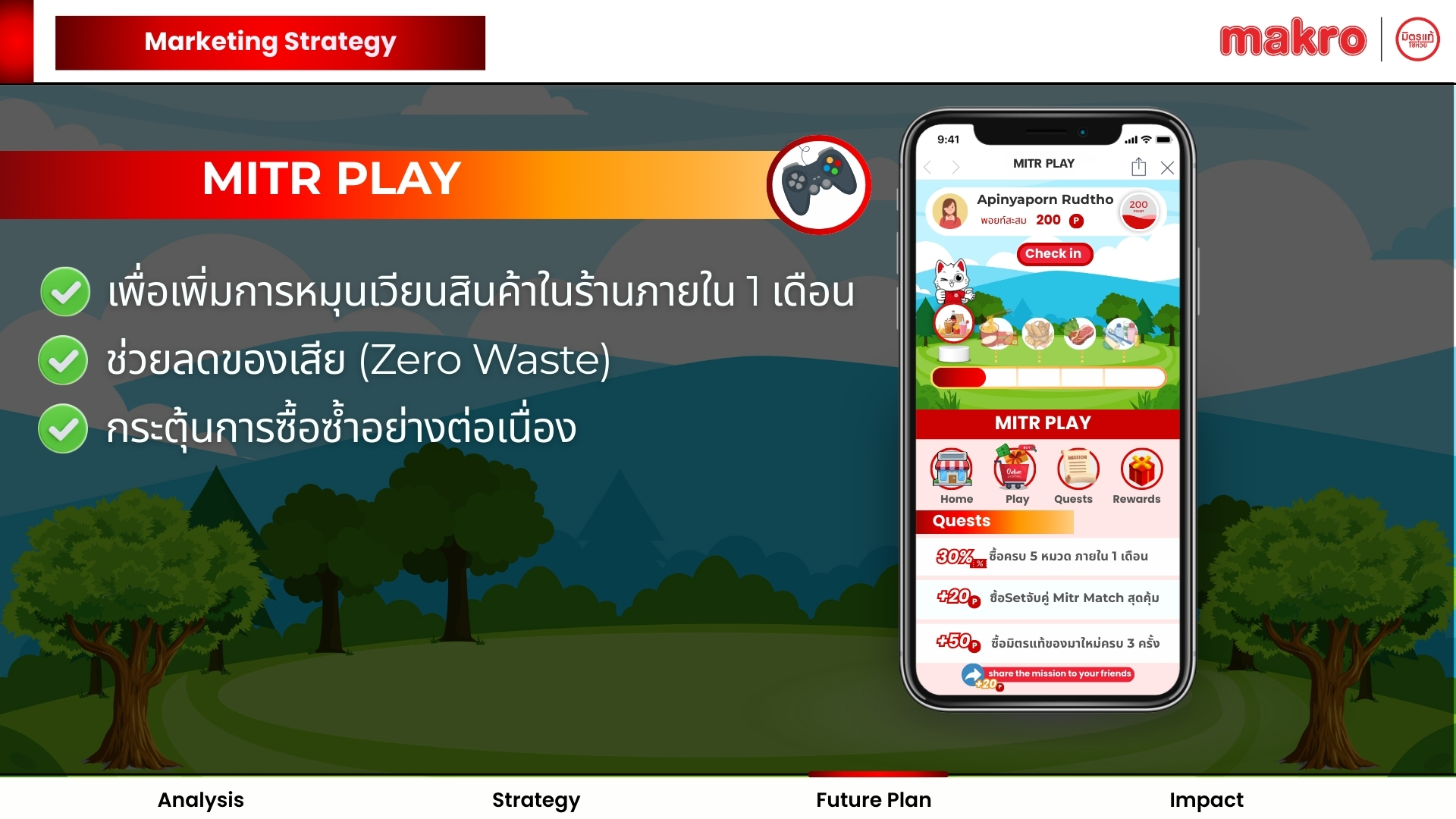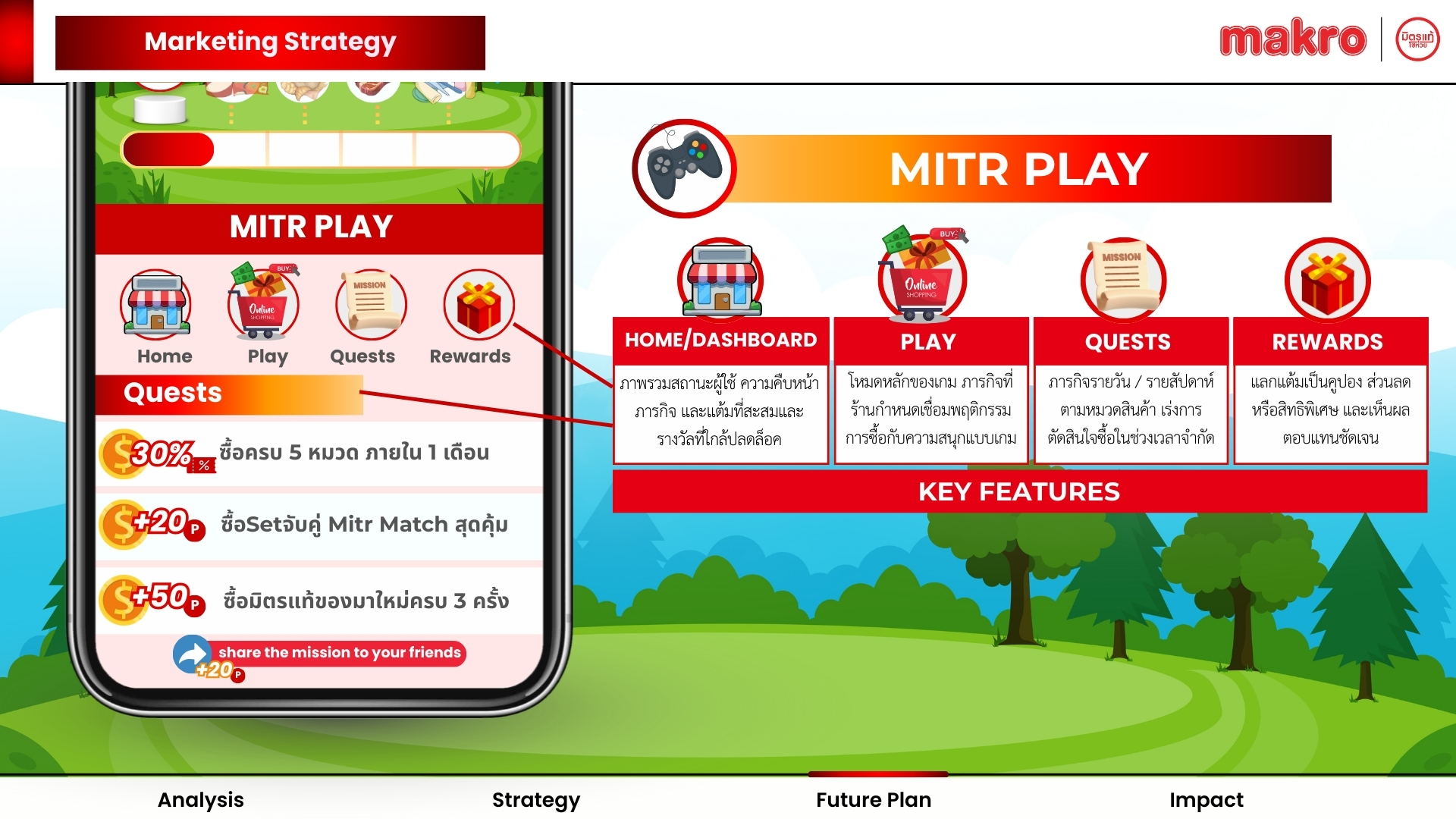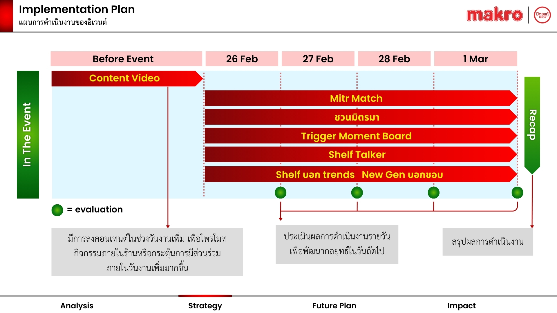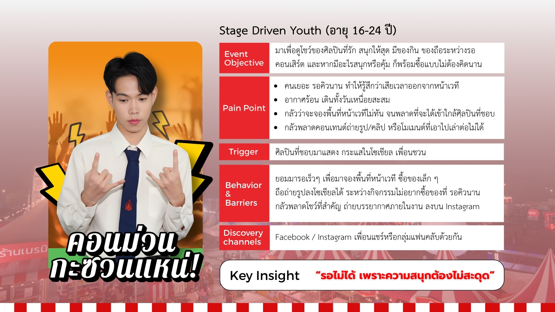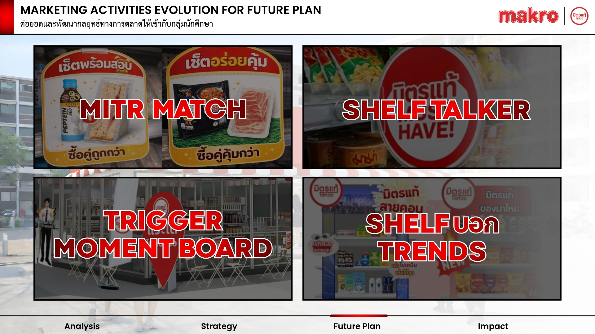 - Marketing Activity: ใช้กิจกรรมและสื่อภายในร้านกระตุ้นการมีส่วนร่วมและการตัดสินใจซื้อ เชื่อมต่อประสบการณ์ร้านเข้ากับความทรงจำของงาน