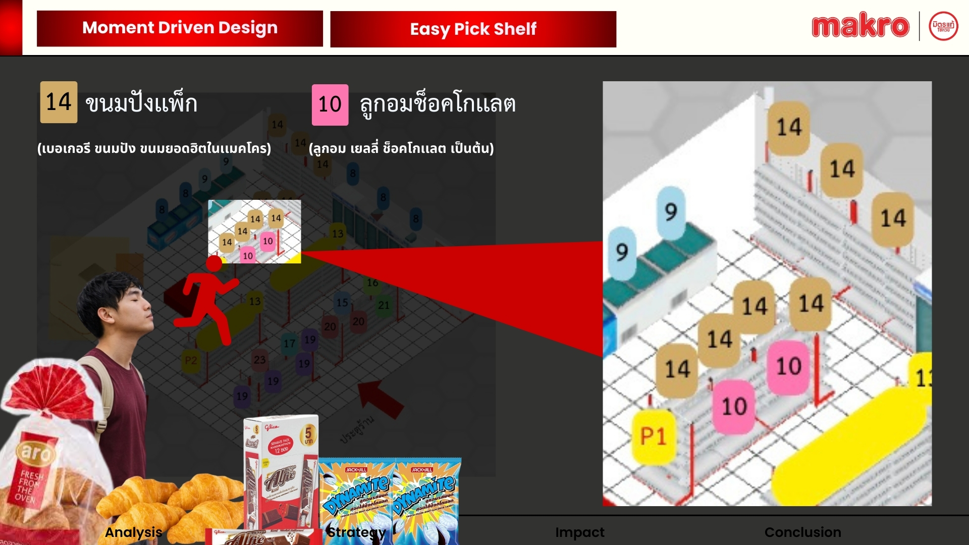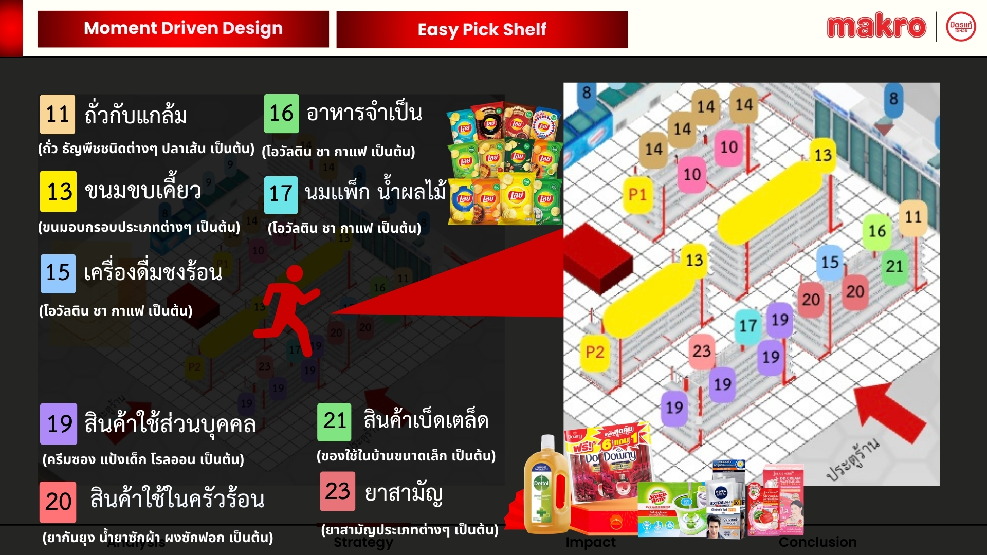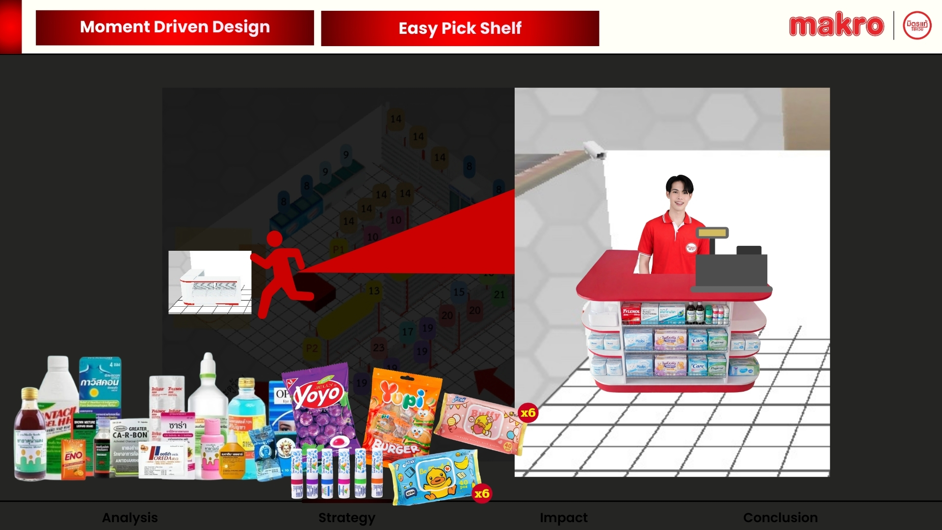 - Shelf Management: จัดเรียงสินค้าแบบ Easy Pick & Moment-based เน้นสินค้าที่ตัดสินใจเร็ว เหมาะกับการเดินงาน ช่วยให้ลูกค้าเลือกได้ทันที ไม่ต้องคิดนาน