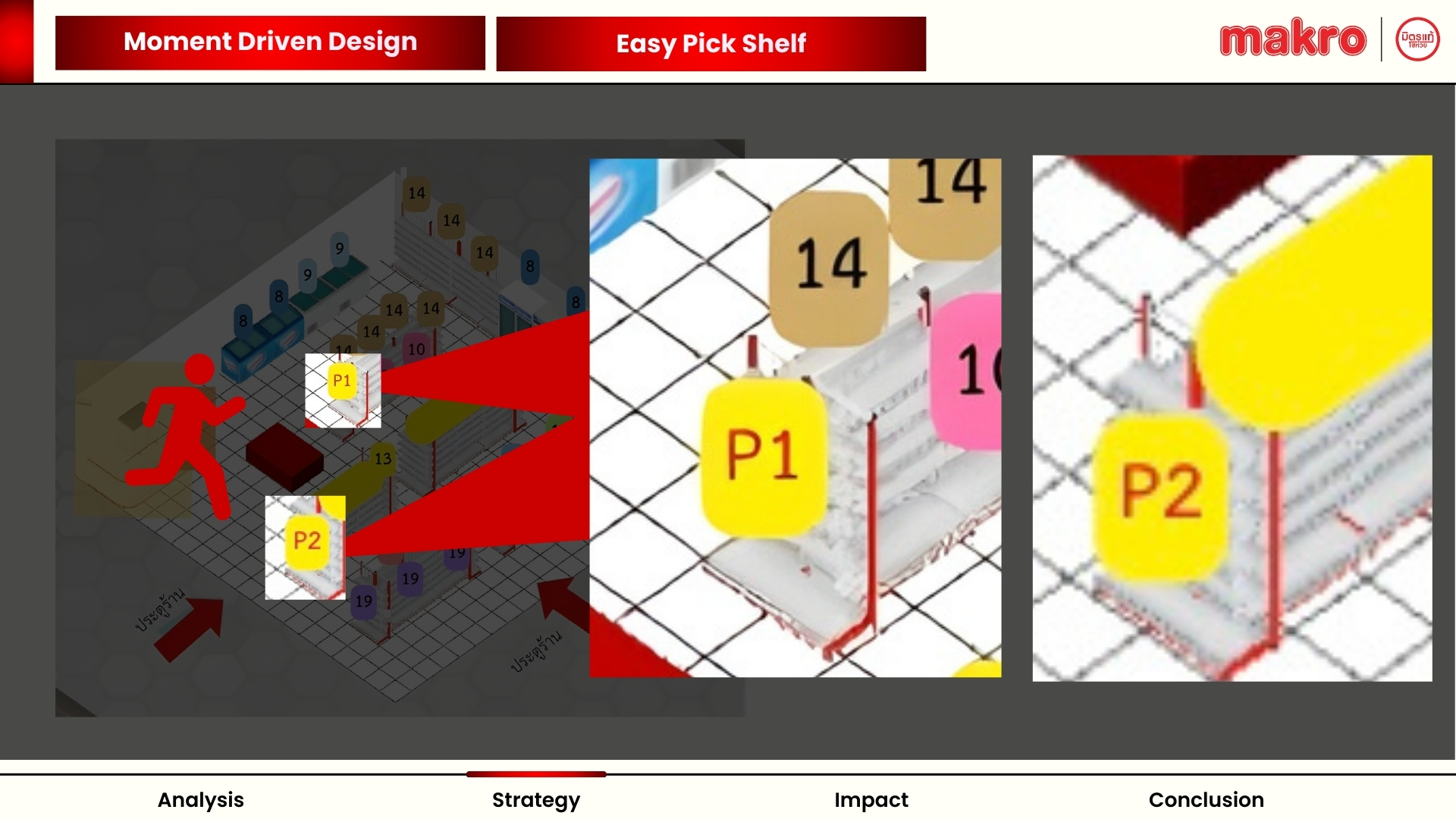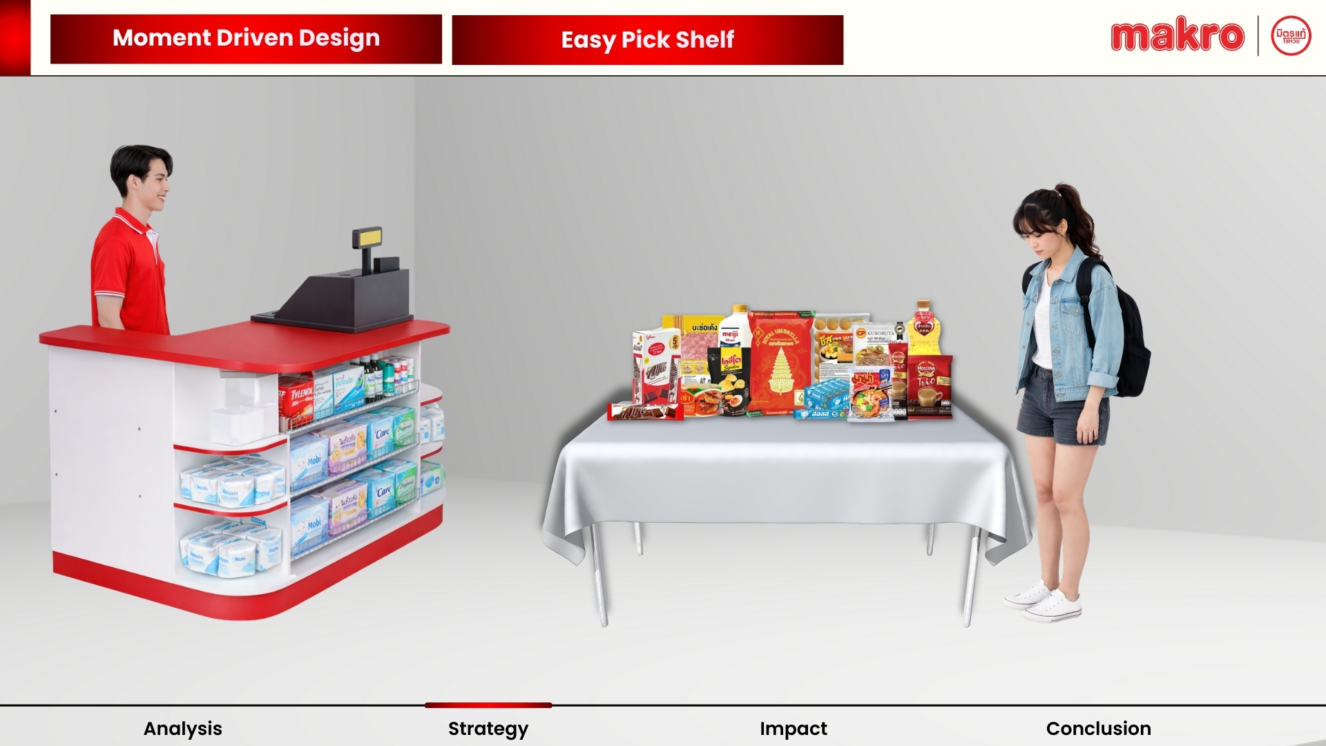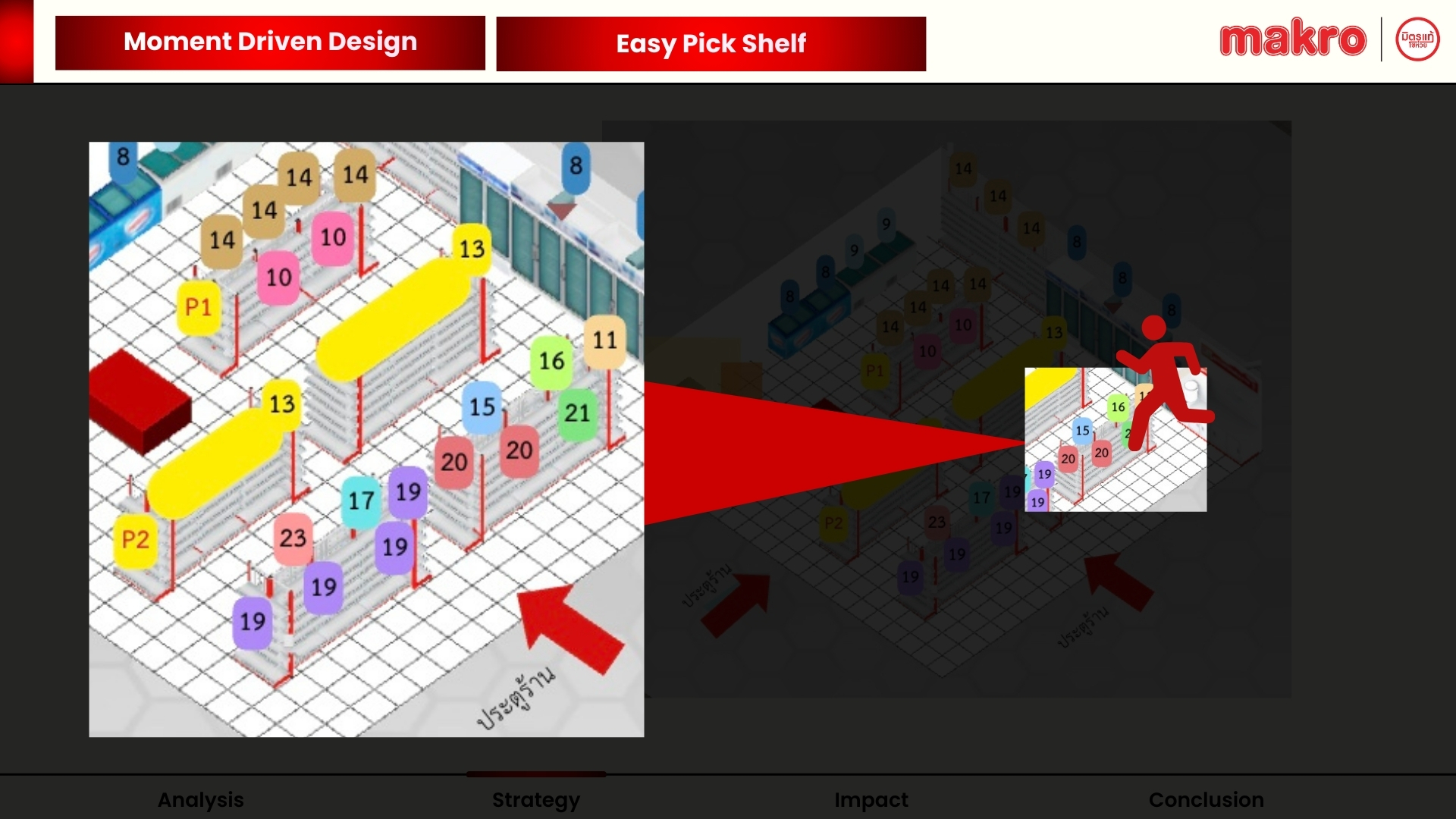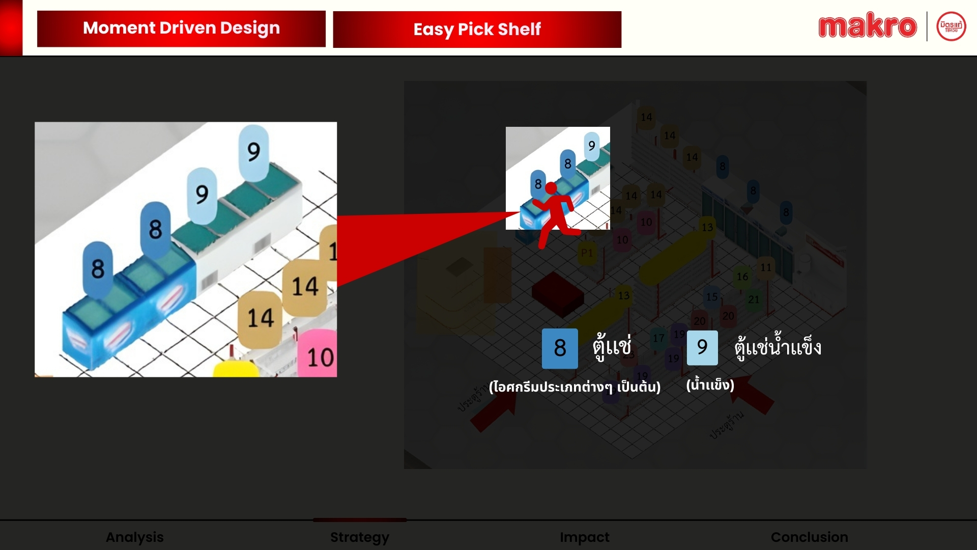 - Shelf Management: จัดเรียงสินค้าแบบ Easy Pick & Moment-based เน้นสินค้าที่ตัดสินใจเร็ว เหมาะกับการเดินงาน ช่วยให้ลูกค้าเลือกได้ทันที ไม่ต้องคิดนาน