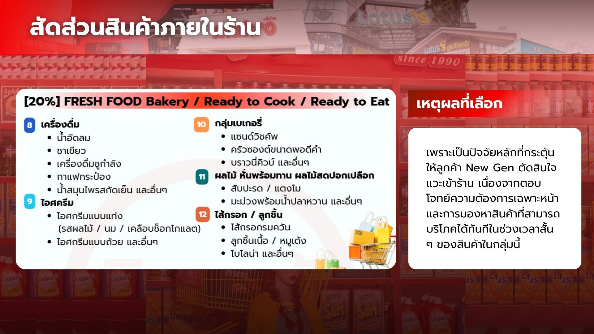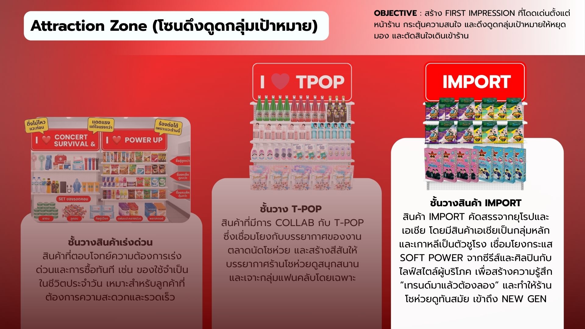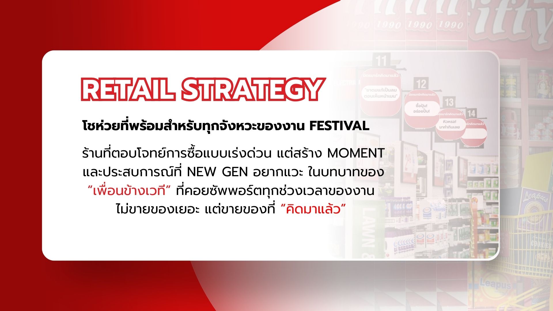 ในปัจจุบัน ร้านโชห่วยส่วนใหญ่ยังคงดำเนินธุรกิจในรูปแบบดั้งเดิม ทั้งด้านภาพลักษณ์ การจัดวางสินค้า และประสบการณ์การซื้อ โดยมุ่งเน้นการตอบโจทย์ความจำเป็นพื้นฐานมากกว่าการสร้างประสบการณ์ ส่งผลให้รูปแบบร้านไม่สอดคล้องกับพฤติกรรมและความคาดหวังของผู้บริโภครุ่นใหม่ โดยเฉพาะกลุ่ม NEW GEN หรือ GEN Z ที่ให้ความสำคัญกับความสะดวก ความรวดเร็ว และภาพลักษณ์ของร้านค้า